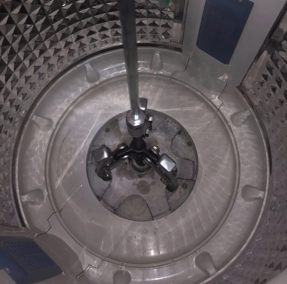 二次購買工具后如下圖拆掉了大螺母后,由于內(nèi)筒取不出來,就這樣洗衣機又被放置了幾天。